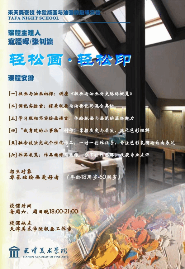 本次课程专为零基础学员设计,从认识一支画笔、一块印版开始,通过观察身边的事物捕捉生活之美。在油画中体验颜料的厚重堆叠,在版画中玩味转印的偶然效果,最终掌握调色奥秘与复数创作的乐趣。无需绘画基础,只需带上好奇心:在慢创作中感受油画颜料的独特触感,在轻按压中收获版画的意外之美,让艺术成为生活的温柔注脚。